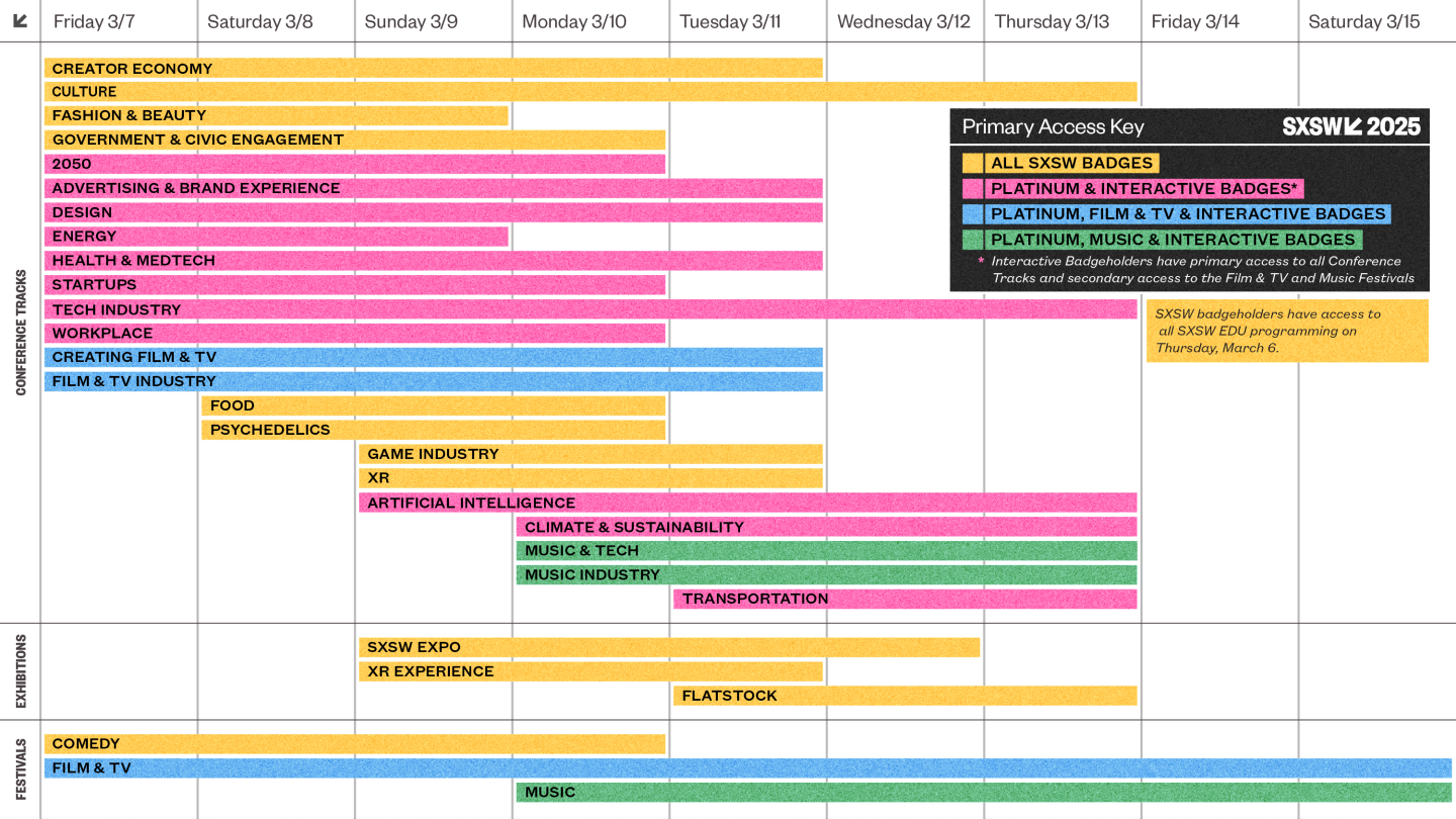The SXSW Conference provides an opportunity for global professionals at every level to participate, network, and advance their careers. From March 7–13, explore conference programming across 23 diverse tracks and variety of formats including Keynotes, Featured Speakers, panels, workshops, and more.